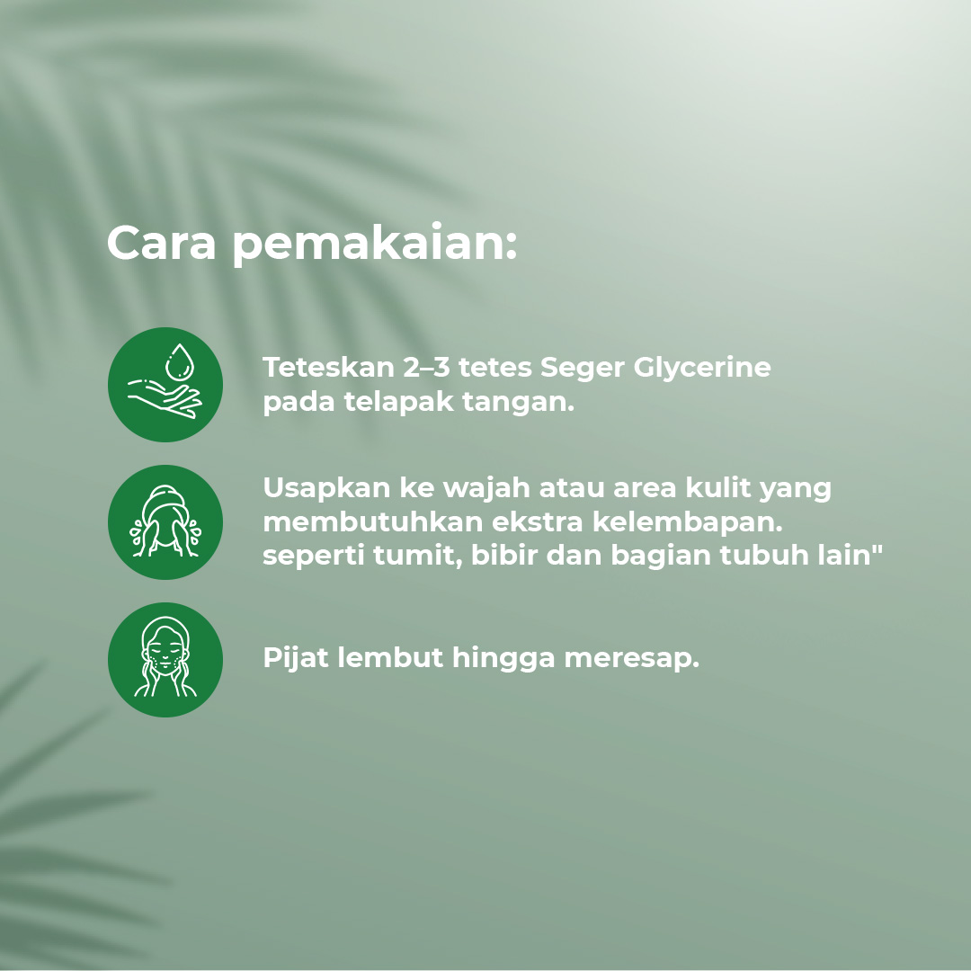 Seger & Co Gliserin Dipakai pada kulit dan bibir untuk melindungi kulit yang kering dan pecah-pecah, serta pelembab kulit, membuat kulit dan bibir yang kering menjadi halus dan lembut